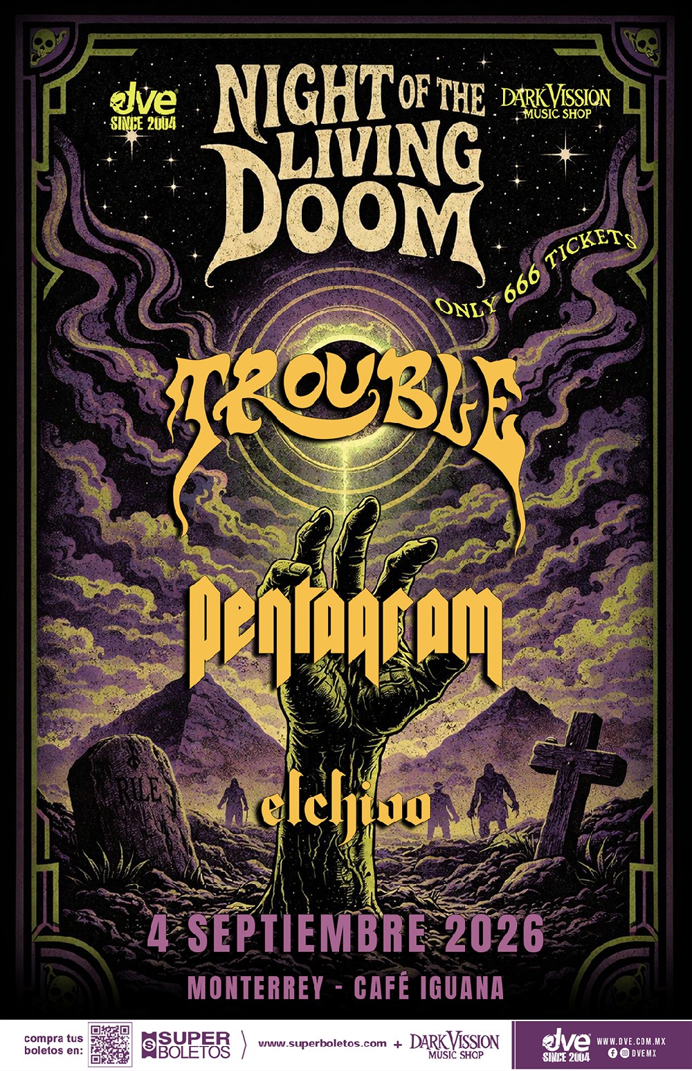 Boletos ya disponibles en $850 + cargos a través de nuestras tiendas Dark Vission Music Shop / Dark Vission Music Shop Saltillo y en línea por Superboletos.